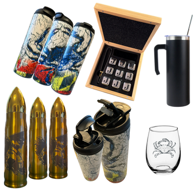 Our two embellishment processes for stainless steel tumblers and other drinkware are laser engraving and sublimation. The details below apply to all of our drinkware. The two most important facts to remember are: